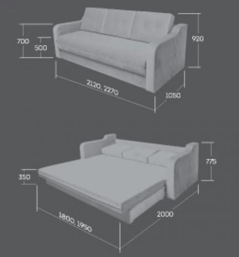 Механизм трансформации – опрокидывающаяся спинка, тахта.